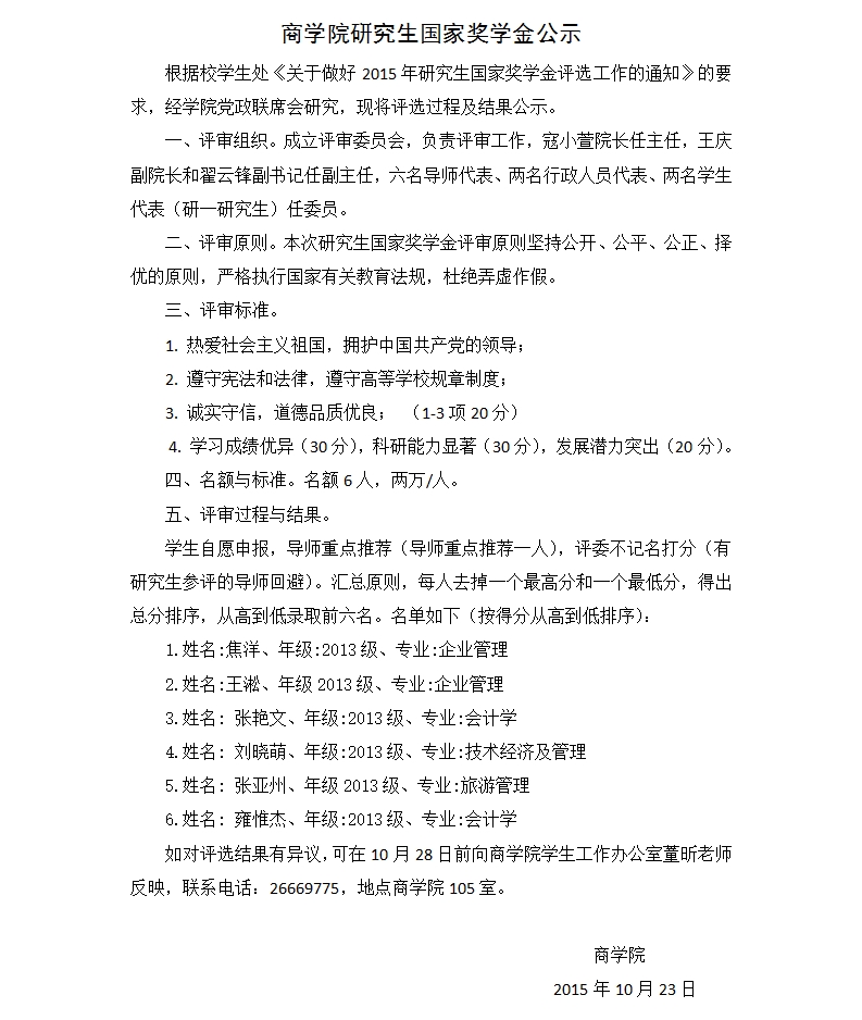 商公司研究生国家奖学金公示