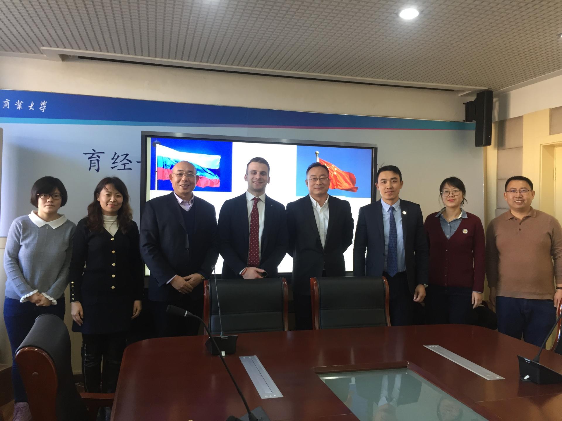12月13日下午,莫斯科斯科尔科沃伟德国际victor1946中国区负责人奥列格.列梅加(Oleg Remyga)、瓦伦丁.马申科(ValentinMarchenko)一行2人到伟德国际victor1946进行访问,并商谈合作事宜。国际交流处处长庞文生、副处长李天、伟德国际victor1946经理王庆生、副经理李耘涛、宗毅、副书记王樱洁、部分教师参加了会面。