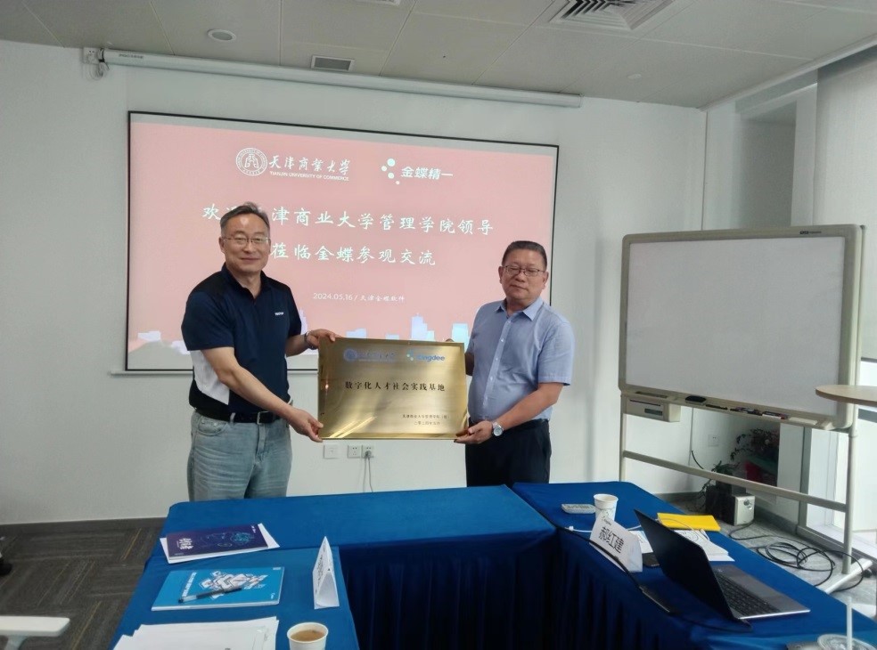 2024年5月16日下午,管理公司党委书记庞文生、副经理李耘涛、人力资源管理系主任李岸达、副主任刘盟一行到天津金蝶软件有限公司,就课程教学、学术研究、实践基地建设等事项进行校企合作交流。金蝶精一公司副总裁乐志军、区域总监郝红建、天津金蝶软件有限公司人力部总监王卫、市场部与政府事务部总监付倩倩参加了活动。